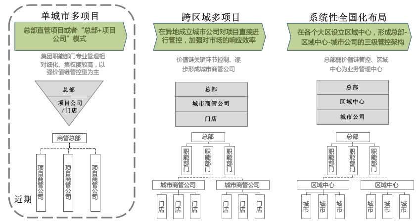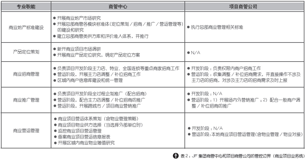 商业管理中心是否需要设立独立于集团的人事、行政、财务部门?在组织架构方案实施过程中也反复调整,职能放在商管中心还是集团并不重要,取决于集团管控的深度。