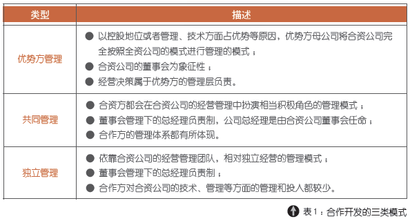 共同管理模式下,更多的是在股权合作或者技术层面不相上下,导致在项目开发过程中,合作方都有意愿介入。在共同管理模式下,一般遵循以下三点: