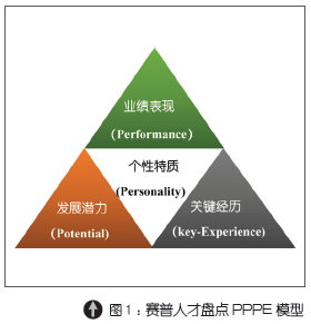 评价标准是人才盘点的重中之重。围绕项目总,赛普从各职位所处的公司和业务环境出发,梳理其在工作职责和关系处理上的关键挑战和困境,同时结合咨询过程中对各职位的大量访谈和对标,形成聚焦房地产人才盘点模型——PPPE 模型(如图1),即个性特质(Personality)、业绩表现(Performance)、发展潜力(Potential)和关键经验(key- Experience)。