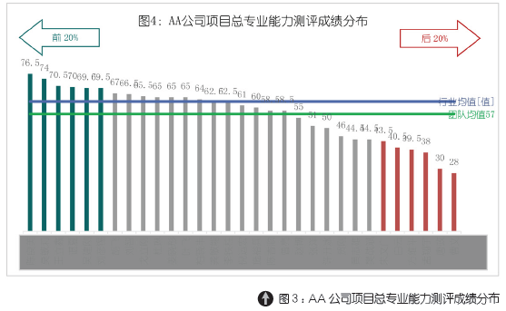 通过对AA公司项目总专业能力测评成绩的分布以及各项能力均值与行业的对比分析,可以发现AA公司大多数项目总及后备梯队人才的专业技术能力水平与合格项目总还存在一定的差距,这将导致其普遍面临角色转换与专业能力提升的挑战。
