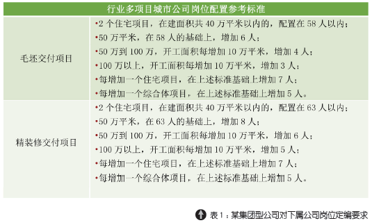 岗位定编管理:建立公司岗位设置及编制标准是对人均效能过程控制的有效手段,通过合理高效的岗位设置,将部分职能合并与人员兼职,实现人员配置优化;通过合理的岗位编制标准,有效控制人员数量。(表1、表2)