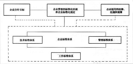 根据GB/T 15496-2003《企业标准体系 要求》的阐述,企业标准体系应以技术标准体系和管理标准化体系为主体,技术标准体系和管理标准体系结合形成工作标准体系,以最终指导岗位工作的开展,具体见下图: