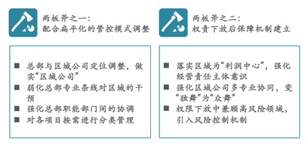 公司架构由三级变为两级,虽然行政关系上实现了扁平化,但从组织管控的角度审视,仍有一些问题尚待厘清。为保障扁平化的有效落地,还需配合使用“两板斧”。