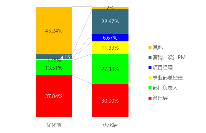优化前后各级审批主体审批占比变化,见下图: