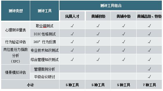 测评工具的设计中,可以选择单一的方法,也可以多种方法组合。例如,想了解员工的专业知识水平,就可以采用专业试题测试;想掌握领导者的管理水平,可以采用360行为反馈、公文筐作业等相结合。本项目中,根据人才的级别及测评重点不同,选用了不同的测评工具组合,如表1所示。