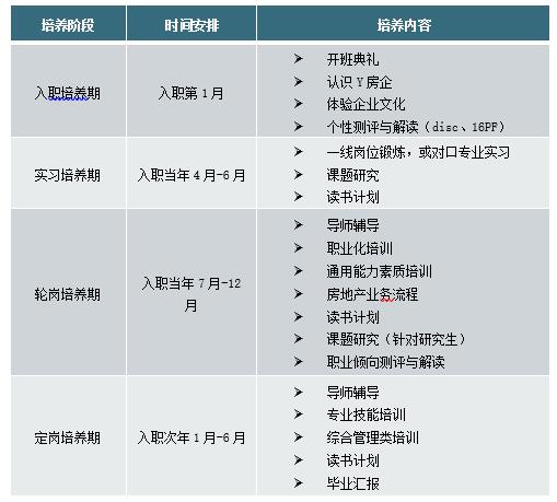 培养内容:凤凰计划的培养内容从应届毕业生初入职场开始,到其顺利转换成职场人,各个阶段无缝衔接,培养内容丰富多样,帮助凤凰人才打造良好的基础。