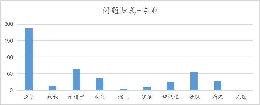 项目开发过程中,各部门、各专业在不同的阶段都需要通力协作把项目做好,而不是互相推卸责任,导致产品“差不多”就好。所以在调研过程中,赛普项目组把问题根据不同专业、不同部门以及影响程度分门别类。让各部门更加直观的看到问题所导致的影响。如图1、图2所示。根据图1发现,Y房企在开发过程中遇到的产品缺陷,囊括了各个专业如:建筑、给排水、电气、暖通、景观、精装等等。这些在设计阶段没有合理解决的问题,往往会在项目建设过程中会爆发出来,导致图纸变更、项目进度延误、产品品质下降等一系列问题。从图2可以发现,图1各专业造成的问题影响,最多的指向为产品品质下降及项目成本增加。所以设计作为项目前端,如果前端没有解决掉问题,在项目开发建设过程中都是会一一凸显出来,造成产品品质下降影响业主满意度及项目成本的增加影响项目收益率等。