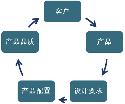 秉承以客户实用为第一位的目的,赛普团队梳理出来问题的分类后。结合赛普的产品标准化方法论,针对Y房企的具体需求,量身为Y房企制作契合企业战略发展的产品标准化方案。如图3所示。所有的客户、产品、产品品质必须遵守企业对产品线的定义。不同的产品线有不同的相对应客户;而不同的相对应客户他们对产品的需求也是不一致的;而不同的产品对设计院的设计要求也是不一样的;不同设计设计出来的产品的产品配置也是不一样的;产品配置不一样导致的产品品质及客户的感受又是不一样的。