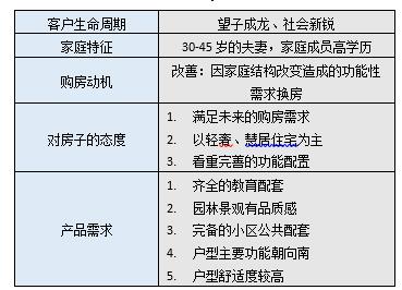以客户为例,要统一营销、设计的口径。在新项目开始时,营销定位的客户,设计可以理解。并且根据不同客户的定位,提炼出不同客户的需求及他们对产品的敏感点。如表2所示。刚改客户购房的动机是因家庭结构发生改变而造成的功能性需求。什么是家庭结构发生改变,亦就是说房子原有的功能空间已经无法满足这一类客户的居住需求,可能是这一类客户把父母接来同住、也可能是第二个孩子出生等等原因。这就意味着这一类客户对产品功能空间数量的需求及这一类客户对产品品质的需求。
