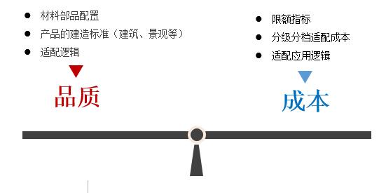 以产品品质为例,解决设计与成本之间的平衡问题。在不影响设计品质的前提下,达到成本控制的目的。使产品品质与成本达到平衡。如图5所示。通过对Y房企的产品调研发现:Y房企的产品对应的目标客户、售价与他们产品的成本是不相匹配的。这就造成了产品品质过度,增加了项目成本。所以,我们在对Y房企的标准化体系建设过程中,我们着重解决设计与成本之间的平衡问题。比如:降低一些客户看不到的部位的石材铺贴,改为真石漆;降低部分客户不敏感部品的配置;相对的增加一些客户敏感部品的配置等。使项目成本在降低的过程中,不影响品质。并且在客户敏感点上的成本略有增加,使有限的成本可以达到“好钢用在刀刃上”。