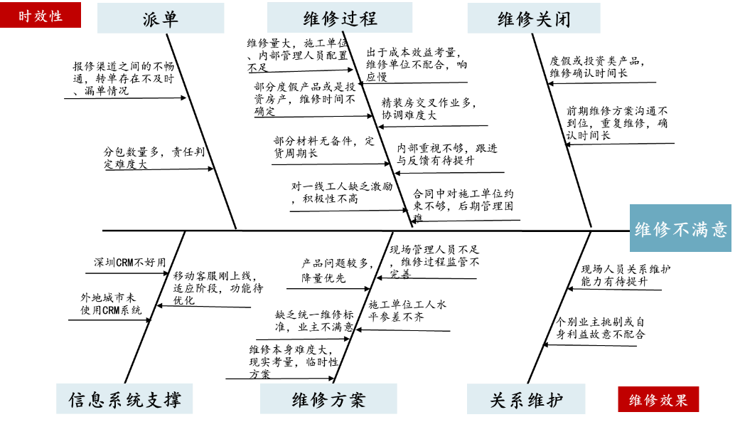 前述H房企某区域公司在明晰客关能力重点提升方向后,通过内部调研、业主访谈、标杆研究等方式,得出具体维度中内部管理中存在的不足。