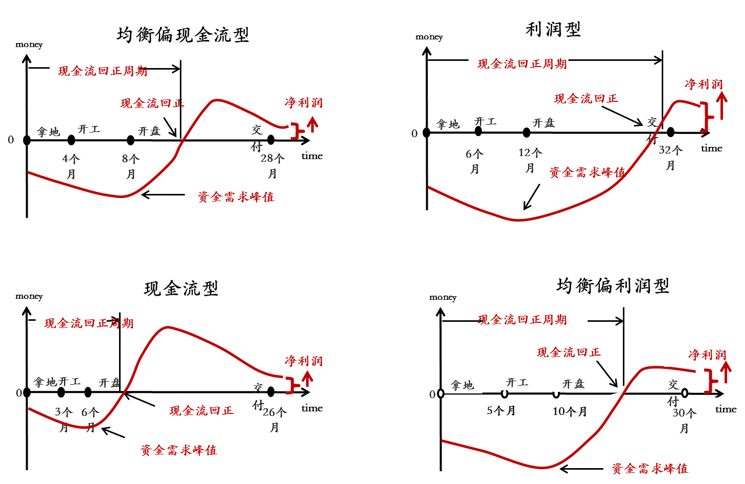 现金流回正时间主要受开工、开盘时间的影响,开工、开盘越早,现金流回正时间越早。可以通过早起跑、串改并、控周期等方法加快开工、开盘时间。(前述文章已有介绍)