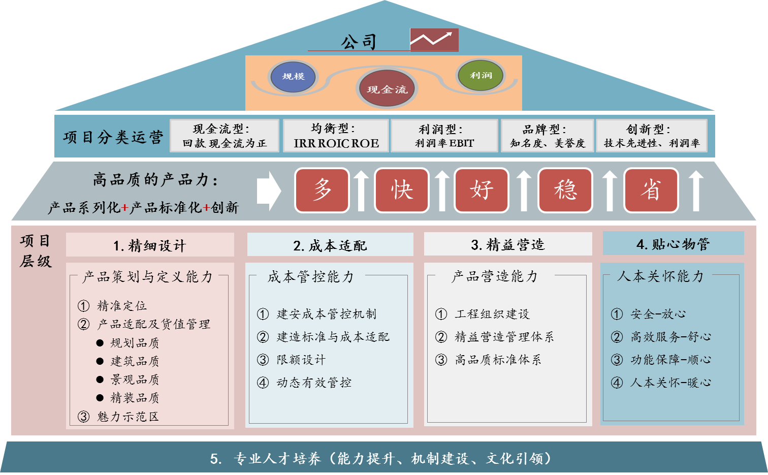 从经营中来,到经营中去。基于公司的发展战略建立项目的分类运营体系,明确不同项目的经营使命(即现金流型、均衡型、利润型、品牌型和创新型等),并从经营需求把控产品力提升方向。因此,产品管理已经不再仅仅是专业管理,而是持续的经营管理和项目操作的核心。