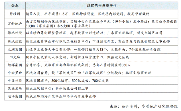 表2 部分TOP30房企组织架构调整动作