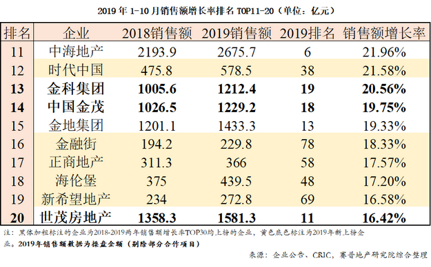 表2 2019年1-10月销售额增长率TOP11-20(单位:亿元)