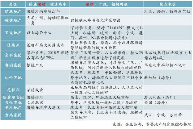 表3 2019年高增长房企城市布局战略