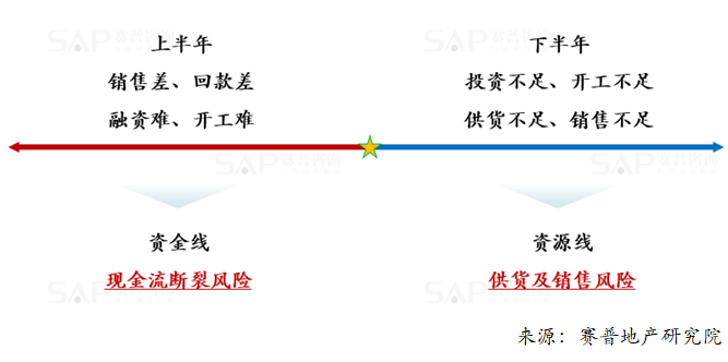 行业面临进一步的洗牌,经营能力强的房企将进一步吞噬能力差的企业的份额。未来企业需要面对两条线上的风险,一是资金线,二是资源线。如图1。