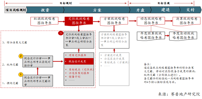 又如万科各专业交圈的运作链条,围绕项目通过“设计-合约-项目”和“报建-销售-项目”两个“铁三角”实现。