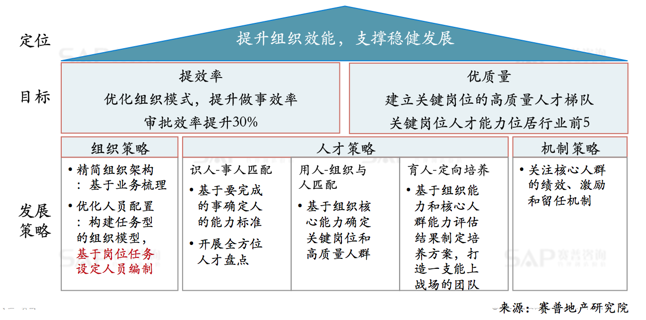 从上述标杆房企的管理动作中可以看出,提质增效已经成为行业制定人才策略的主流方向。但每家企业的发展阶段与实际能力各不相同,提质增效的具体落地策略也会有所差异。 为有效识别企业问题、针对性制定提升策略,在人才策略解码的基础上,还需要制定人才效能提升策略,由此为组织效能提升奠定基础。