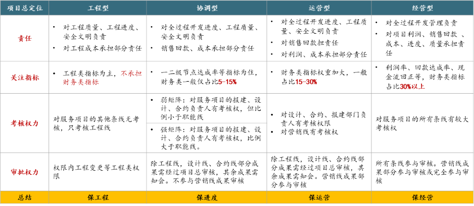 关键点5:构建专业能力模型。将所有二级能力词条进行整合,形成专业能力模型,涵盖一级维度、二级维度和各个词条释义。其中,不同项目总的定位及其能力等级有所不同,如对于工程型项目总,工程安全和质量控制是重要条件,而对于运营型项目总来说,经营意识和成本管控更为重要。