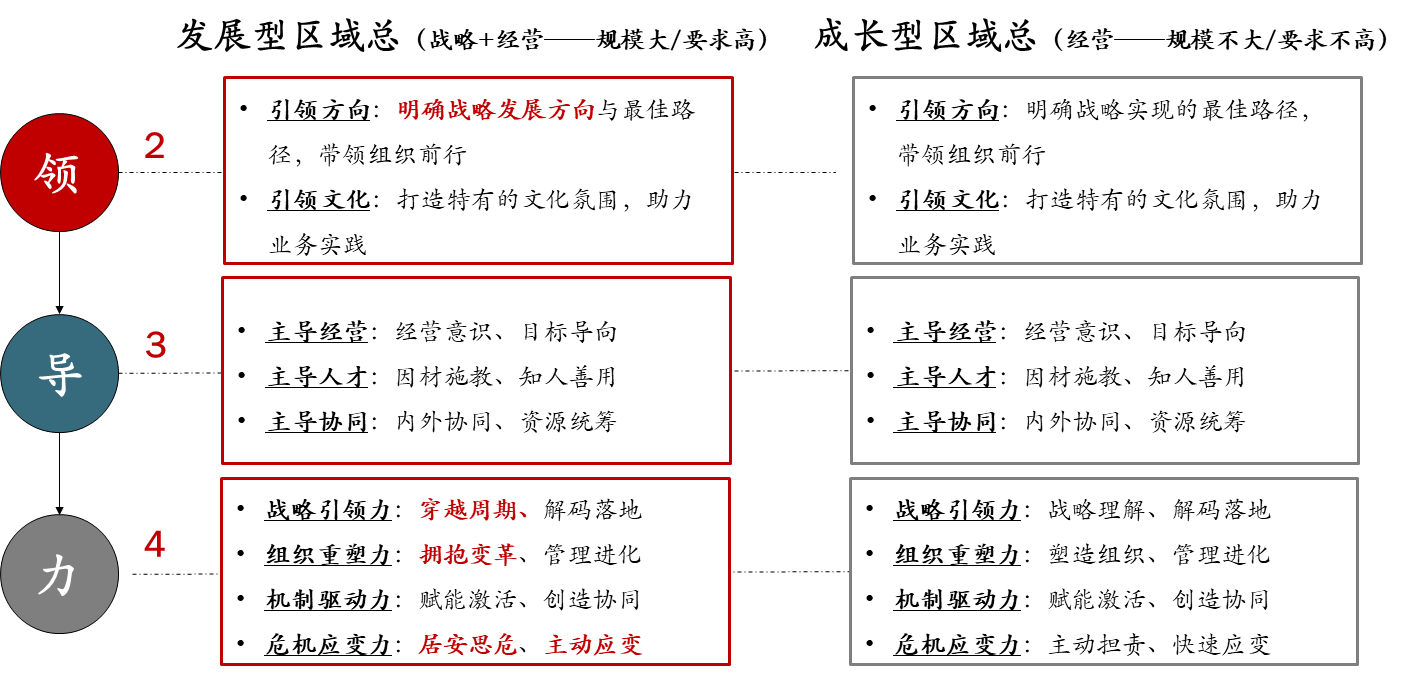 结合近期内外部环境以及对于各类型行业的分析研究,赛普构建了“地产区域总2-3-4领导力模型”(如图4)。
