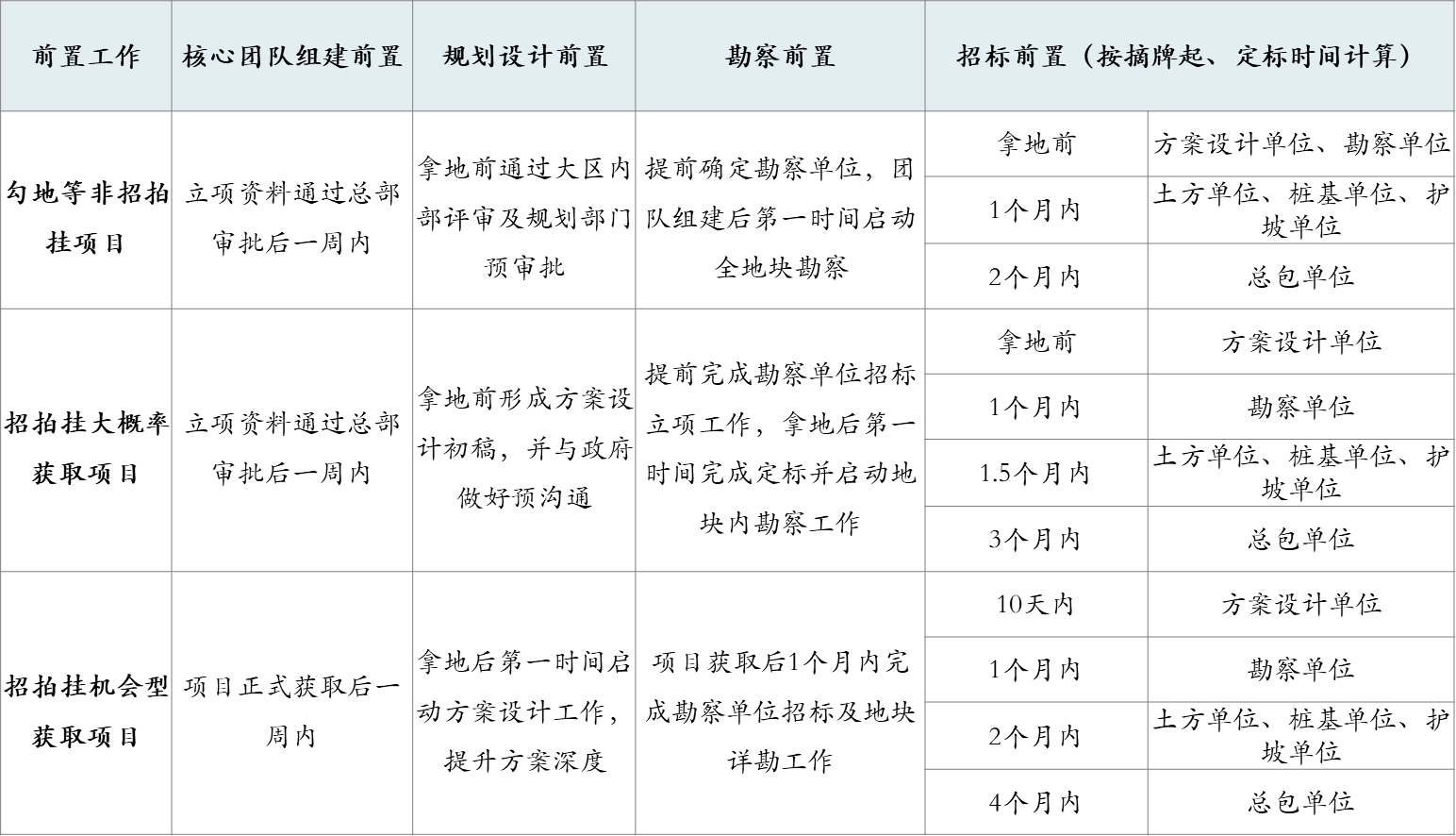 表1某标杆房企三类项目五项差异化开发前置工作项