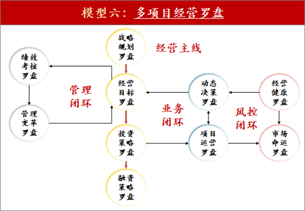 从单项目全价值链沙盘升级为多项目经营罗盘,将外部经营变化与内部经营选择相结合,围绕多项目经营决策过程,聚焦全盘统筹与全局经营,打通1条主线与3个闭环,实现业务与管理的一体化。