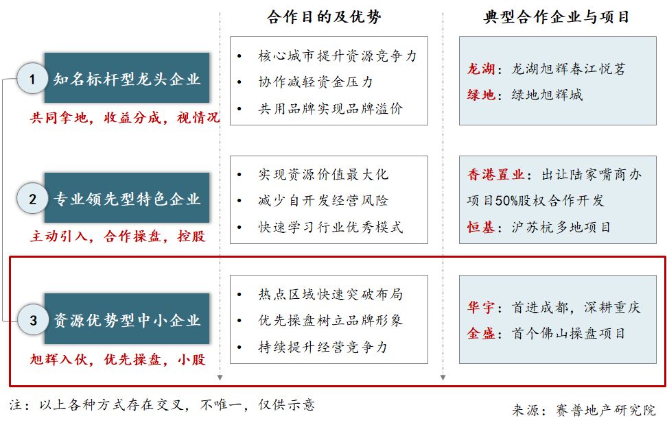 旭辉轻资产模式的合作开发对象中,最主要的是资源优势型中小企业,借助本地企业的优势快速突破热点区域,且在操作中极其重视合作可持续性,通过优先操盘树立品牌形象,持续提升经营竞争力。