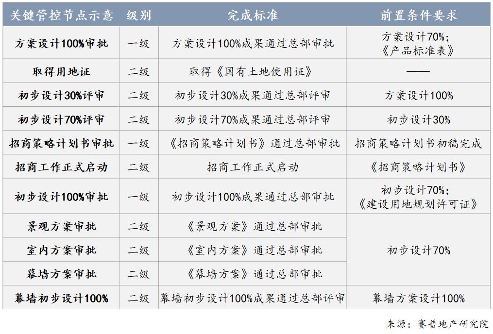 通过关键节点管控界面的梳理,进一步明确了各条线部门在开发建设阶段的权责,与后续的关键节点会议、关键节点流程共同构成了关键节点管控规则。