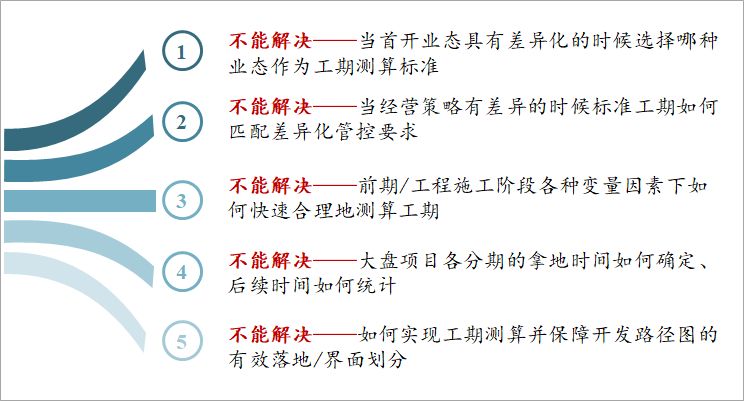 归结起来,传统的标准工期所存在的问题,一方面体现在实操性、灵活性及落地性上,另一方面表现为与经营策略不匹配,在很多情况下无法与计划管理联动或者联动关系很弱,因而常常无奈被“束之高阁”。