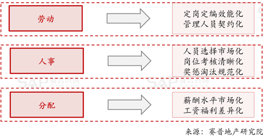 具体而言:一是深化劳动制度改革,建立员工择优录用、能进能出的用工制度;二是深化人事制度改革,建立管理人员竞聘上岗、能上能下的人事制度;三是深化分配制度改革,建立员工收入能增能减、有效激励的分配制度。