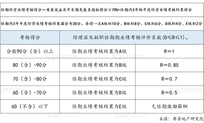 任期激励收入与任期业绩考核紧密挂钩。在个人岗位价值贡献度低、个人绩效和能力表现不好、企业绩效不好的情况下,个人工资福利做到合理“减”。例如某国企任期考核结果与经理层成员任期激励挂钩,设定任期业绩考核评价系数(R),规则如表6所示。
