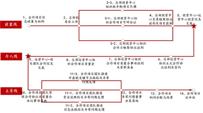 首先,可以通过设置关键会议来对称信息。例如B企的合作项目董事会设计了两条线的议事安排,包括首次会议、产品定位、方案评审、开发大纲、开盘、开业、交付、清算等8个“常规召开时点”,和重大计划调整、重大财务决策、成本费用调整、影响指标事项等4个“重大调整时点”。