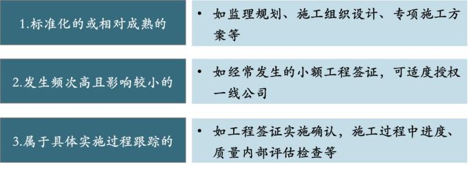 而纵向授权,意味着工程事项向下属一线公司放权,建议重点考虑如图6所示的三类事项。