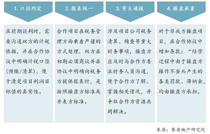 整体而言,秉持目标清晰一致、合作规则先行、过程交圈协同、谁操盘谁负责的四大原则,就能预判风险、规避风险,有效实现合作开发项目的经营目标。