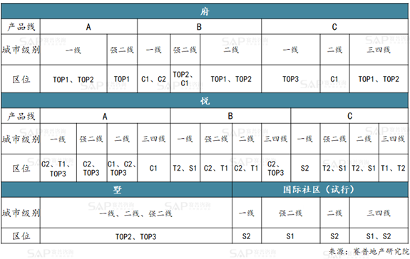 在土地属性和目标客群明确之后,可以直接对应房企的标准化产品线,完成初步的产品定位,实现快速匹配、快速定位、快速测算。如中国金茂,其府系、悦系、墅系、国际社区与土地属性的对位关系如表4所示。