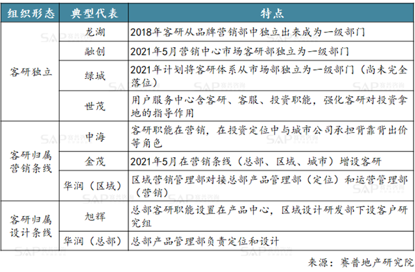 当前主流房企关于客研的组织设置大致分为两类,即客研独立设置部门,或者和相关条线合并。如表5。
