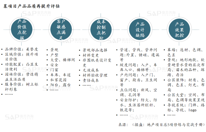除了前期设定质量标准,很多领先房企会要求项目团队进行对项目产品整体效果、工程质量、品质呈现的后评估,或复盘评估项目产品的市场接受程度、细分客户群体的核心价值诉求及品质再提升要点。