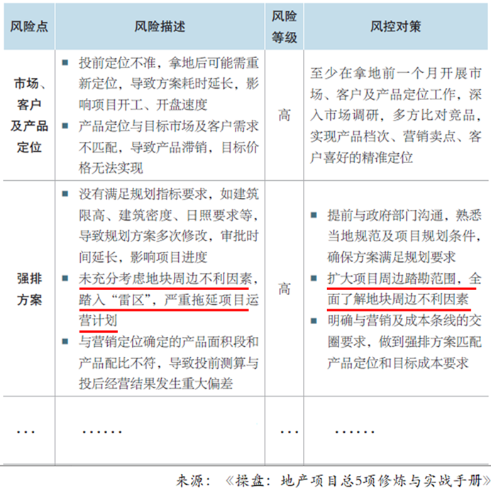 项目总问题:某招拍挂项目在前期土地信息收集时,未明确知悉该地块存在国防光缆、高压线,土地获取后为防止施工受阻,需对管线采取迁移等措施,导致项目整体开发节奏滞后、开发成本增加。