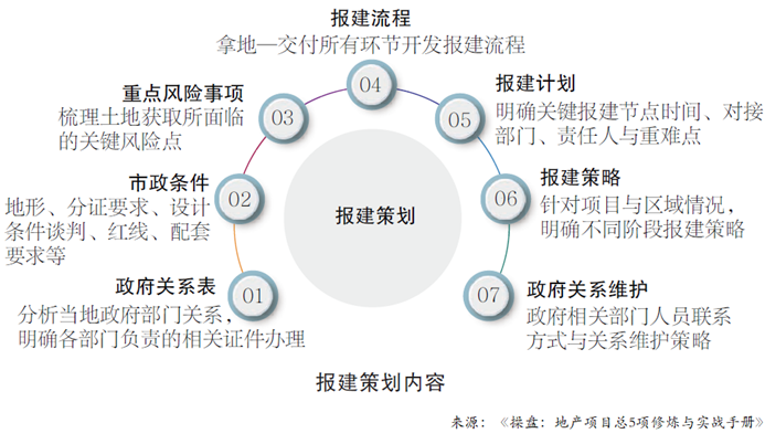 其中,项目总的关键管控要点主要包括五个方面,即明确基础信息、明确报建流程、确定报建计划及与设计充分交圈、明确报建策略和政府关系维护。避免后续偏差影响验收、引发投诉。
