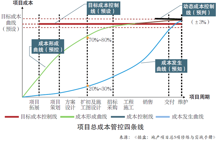 成本形成曲线前陡后缓,说明主要成本取决于前端,因而项目总要做到成本预控,提前设定目标,制定目标成本进行控制;成本发生曲线前缓后陡,说明前期成本发生少,后期成本发生多,所以项目总在过程中要重视动态成本管理,预判成本的发生,及时跟踪成本变化。