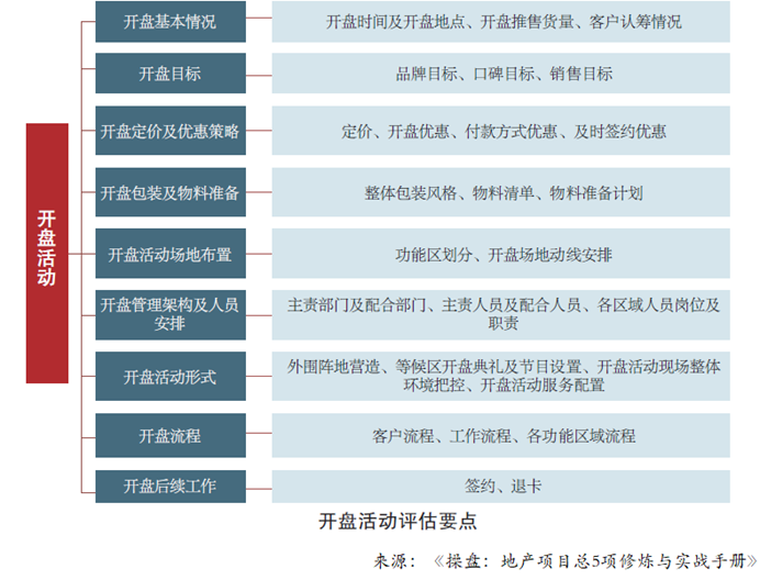 第二,审核资料、严谨规范。评估开盘前销售物料准备是否充足,涉及产品介绍类、销售道具类、现场展示类和销售合同类及附件资料是否准确无误。
