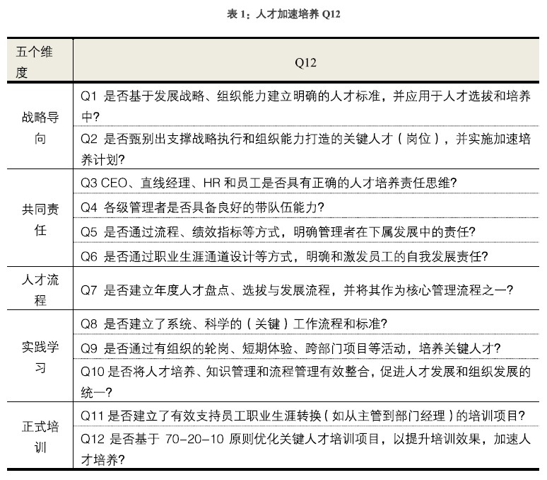 基于人才加速培养模型的五大方面,赛普细化出人才加速培养的Q12,并细化为24个更具体的维度。