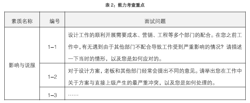 在测评基础上,通过结构化面试进一步考察候选人,并与测评结果进行相互印证。测评报告显示该候选人的影响与说服能力较弱,因此在面试中针对此项能力重点考察: