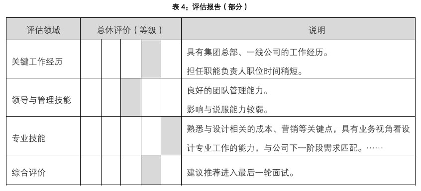 针对关键经历的背景调查和面试此处略去,重点介绍一下管理和专业能力的评估。