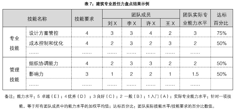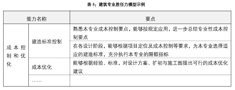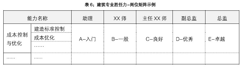 与人岗匹配度评估类似,我们从部门价值定位出发,明晰部门关键职责,并按照建筑、结构、水电、景观等划分建立了专业子序列的胜任力模型。