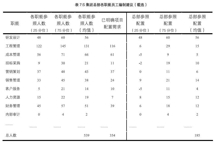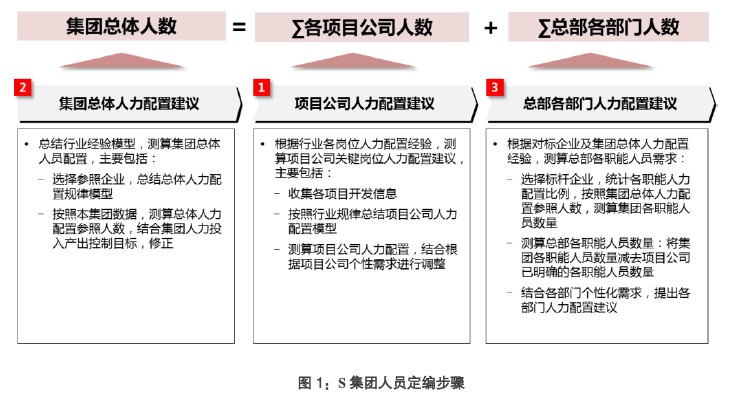 基于对以上三个要点的分析,赛普项目组决定先易后难,先明确各项目公司人力配置,再明确集团总体人力配置,最终明确总部各部门人力配置。