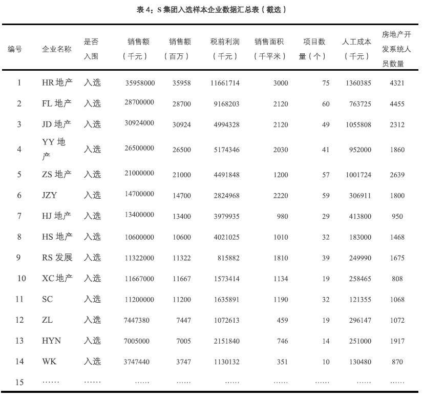 从赛普房地产企业数据库中,经筛选得到处于多种发展阶段住宅地产企业的样本库。
