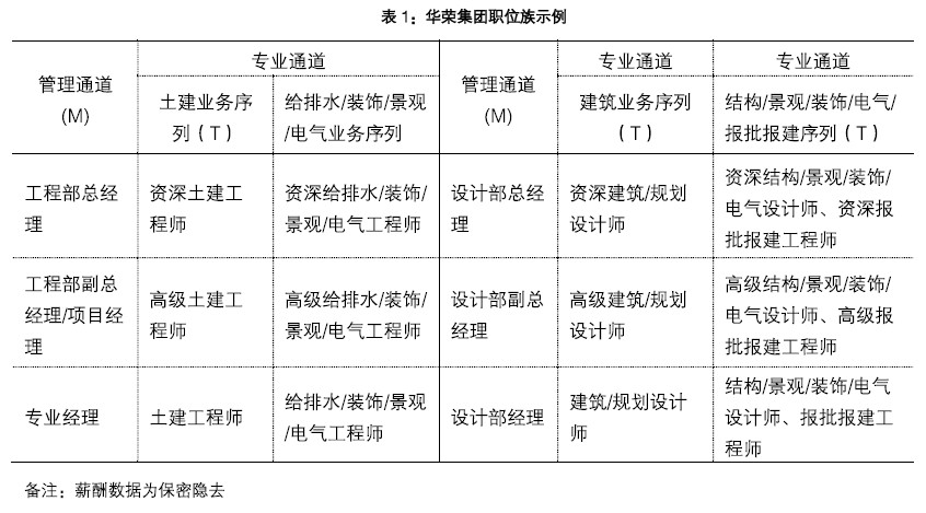 分位值确定之后,我们采取了基于职位族的薪酬设计模式。在岗位价值排序及薪酬设计时,分专业进行处理。该模式的最大优势在于,避免了为求平衡而将部分关键岗位的薪酬拉低。部门内薪酬差异较大的专业也需要进行分开设计,如建筑设计与室内设计。经过与华荣集团领导多次沟通研讨,最终形成了各岗位的薪酬标准。