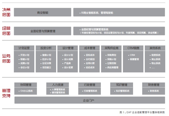 EAP 从管理支持、业务支持、运营支持和决策支持四个层面适配企业的管理需求(图1):